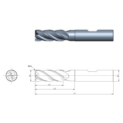 VHM Schaftfräser mit ERMultifunktionales Hochleistungswerkzeug für Vibrationsarme Bearbeitungen. Zwei Schneiden über Mitte. Mit Eckenradius