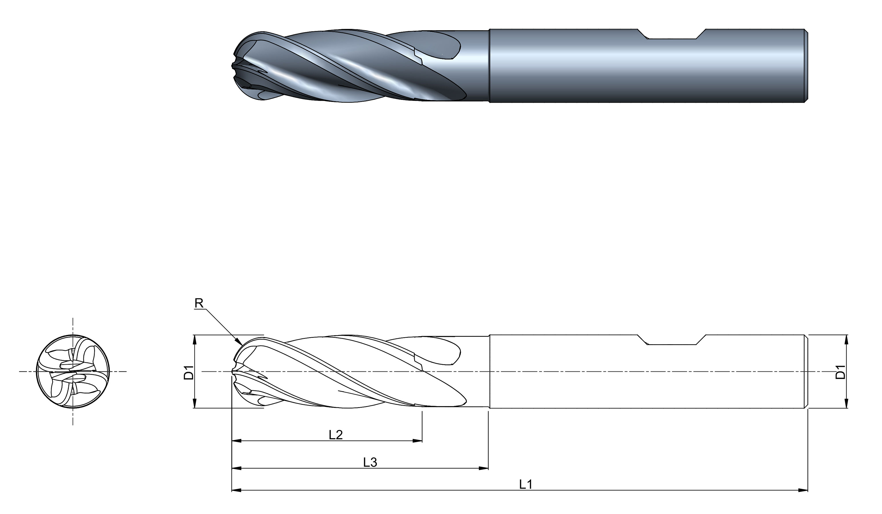 Hochleistungswerkzeug mit 2 Schneiden zur Mitte welches auch zum HSC Schlichten geeignet ist.
